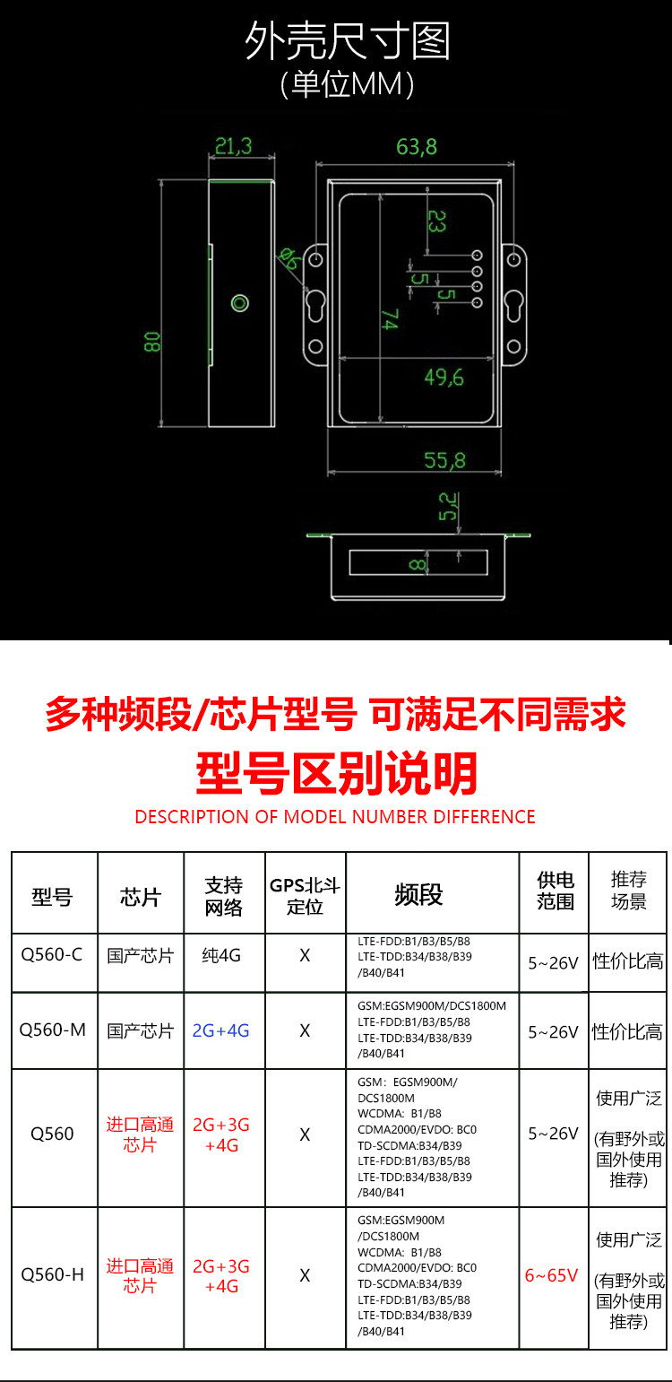 - 颜色分类: 4G全网通Cat1(国产芯) 4G全网通3模(国产芯) 4G全网通7模15频(进口高通芯) 4G全网通7模高通芯6-65V宽电压