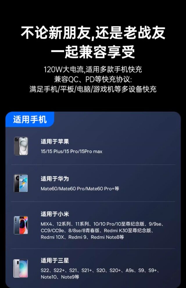 Type-c数据线120W超级闪充适用于华为oppo小米vivo安卓手机快充100W